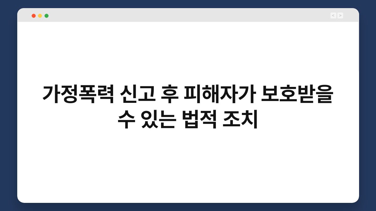 가정폭력은 누구에게나 일어날 수 있는 심각한 문제입니다. 하지만 피해자가 신고를 한 후에도 법적으로 보호받을 수 있는 여러 조치가 있다는 사실, 알고 계셨나요? 이번 글에서는 가정폭력 신고 후 피해자가 받을 수 있는 법적 조치에 대해 자세히 알아보겠습니다. 이 글을 통해 여러분이 알고 있는 정보가 더 풍부해지길 바랍니다.