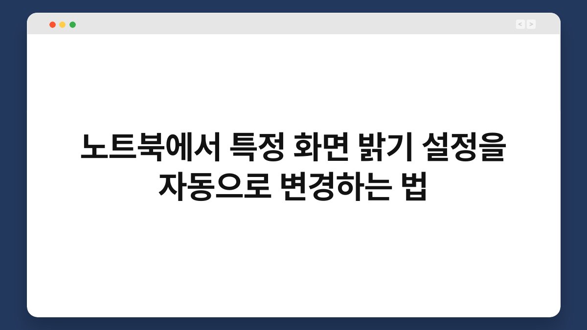 노트북을 사용하다 보면 특정 환경에서 화면 밝기를 자동으로 조정하고 싶을 때가 많습니다. 특히, 어두운 곳에서 작업할 때 눈의 피로를 줄이기 위해 적절한 밝기 설정이 필요하죠. 이 글에서는 노트북에서 특정 화면 밝기 설정을 자동으로 변경하는 방법을 소개합니다. 간단한 설정으로 손쉽게 눈을 보호하고, 작업 효율을 높일 수 있습니다. 이제 함께 알아보도록 해요!