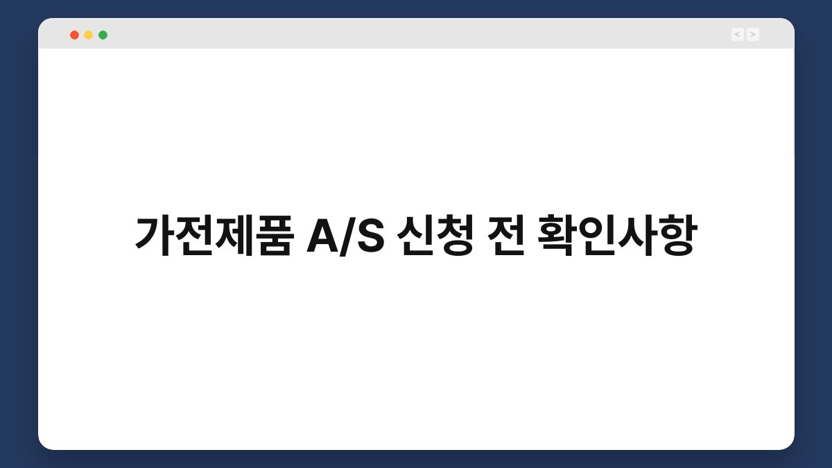 가전제품의 A/S 신청, 생각보다 간단해 보이지만 여러 가지 확인사항이 있습니다. 기계가 고장 나면 당황스러운 마음이 크죠. 하지만 미리 체크할 것들을 알고 있으면, 문제를 해결하는 데 도움이 될 거예요. 이 글에서는 A/S 신청 전 꼭 확인해야 할 사항들을 정리해 드리겠습니다. 함께 알아보면 좋겠죠?