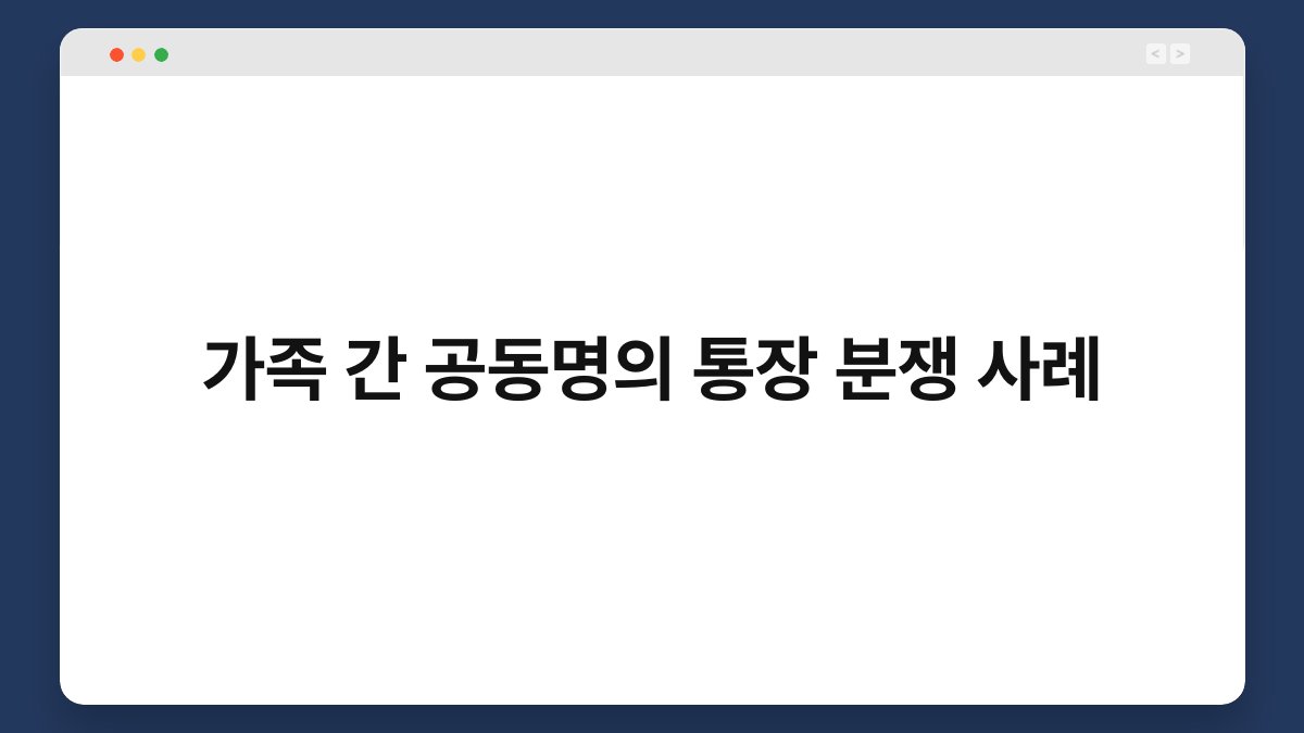 가족 간의 공동명의 통장, 듣기만 해도 복잡한 느낌이 드시죠? 하지만 이러한 통장은 가족 간의 재정 관리를 효율적으로 할 수 있는 좋은 방법이기도 합니다. 그러나 때때로 서로의 이해관계가 얽히면서 분쟁이 발생할 수 있습니다. 이번 글에서는 가족 간 공동명의 통장 분쟁 사례를 통해 어떤 상황에서 문제가 발생하는지, 그리고 이를 어떻게 해결할 수 있는지를 살펴보겠습니다. 궁금하시죠? 끝까지 함께해 주세요.
