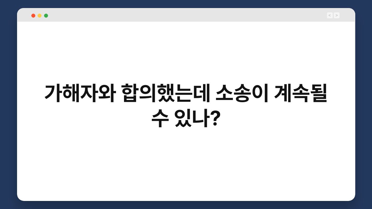 합의란, 두 당사자가 서로의 권리와 의무를 정리하는 계약입니다. 이 합의는 법적으로도 중요한 의미를 갖습니다. 하지만 합의가 이루어졌다고 해서 모든 법적 절차가 종료되는 것은 아닙니다. 가령, 피해자가 합의에 동의했더라도 소송을 계속할 수 있는 상황이 발생할 수 있습니다.