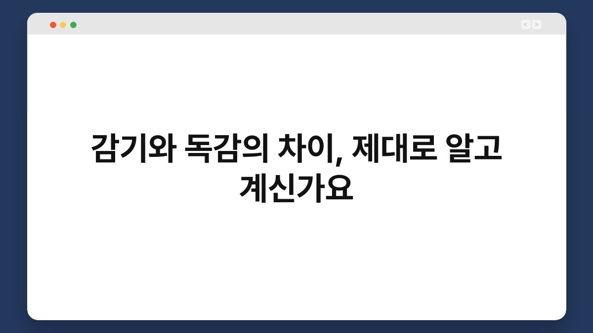 A1: 감기는 기침과 콧물이 주된 증상이며, 독감은 고열과 근육통이 특징입니다. 증상의 심각성으로 구별할 수 있습니다.