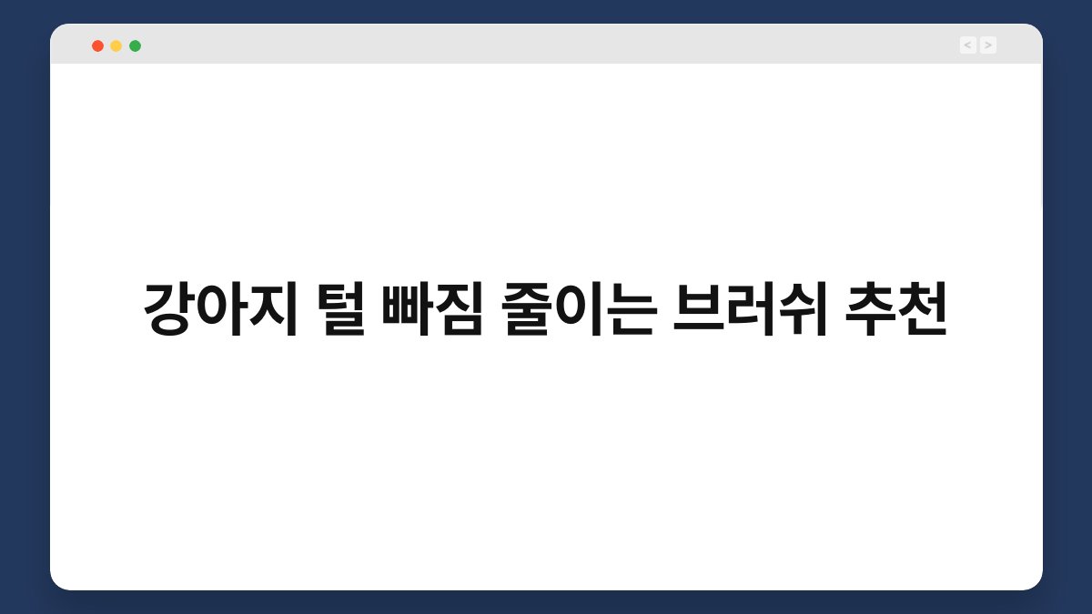 강아지를 키우는 분이라면 털 빠짐 문제로 고민해본 적이 있으실 겁니다. 특히 털빠짐이 심한 계절에는 집안에 털이 여기저기 흩어져 신경 쓰일 수 있습니다. 하지만 걱정하지 마세요. 강아지 털 빠짐을 줄이는 효과적인 브러쉬를 선택하면 이 문제를 상당 부분 해결할 수 있습니다. 이 글에서는 강아지 털 빠짐을 줄이는 브러쉬를 추천하고, 선택 시 고려해야 할 사항을 안내해 드리겠습니다.