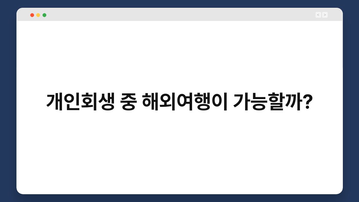 ✅ 개인회생 중 해외여행은 가능하지만 주의가 필요합니다.