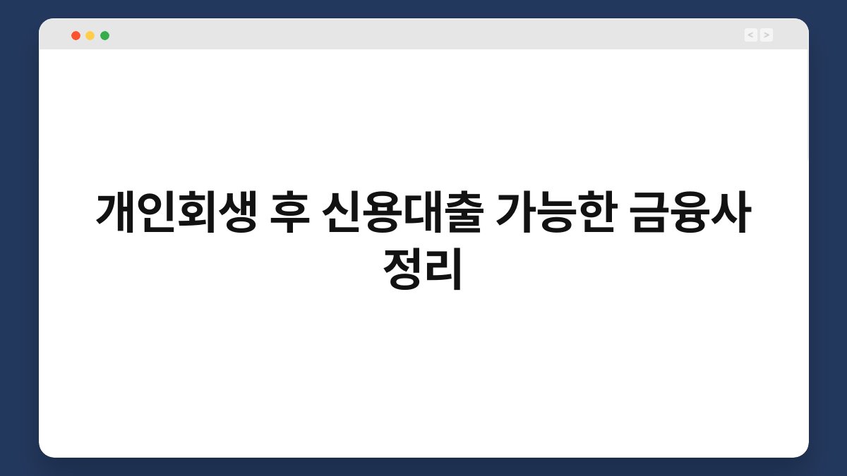 ✅ 개인회생 후 신용대출이 가능한 금융사는 다양합니다.