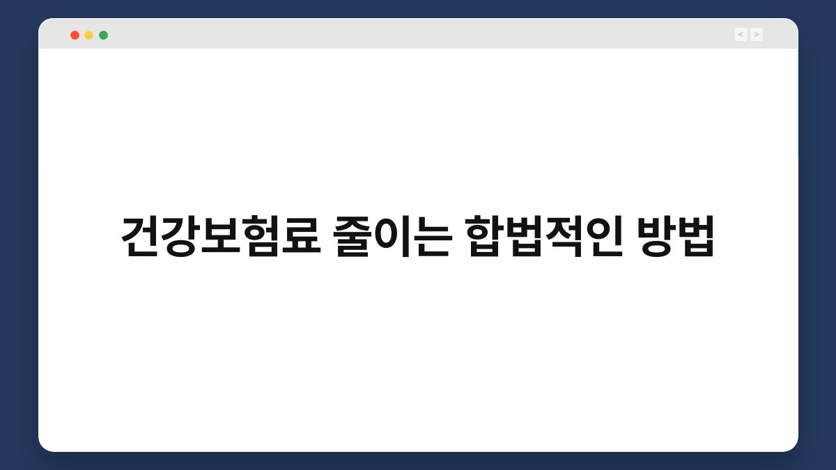 ✅ 건강보험료 절감은 합법적인 방법으로 가능하다