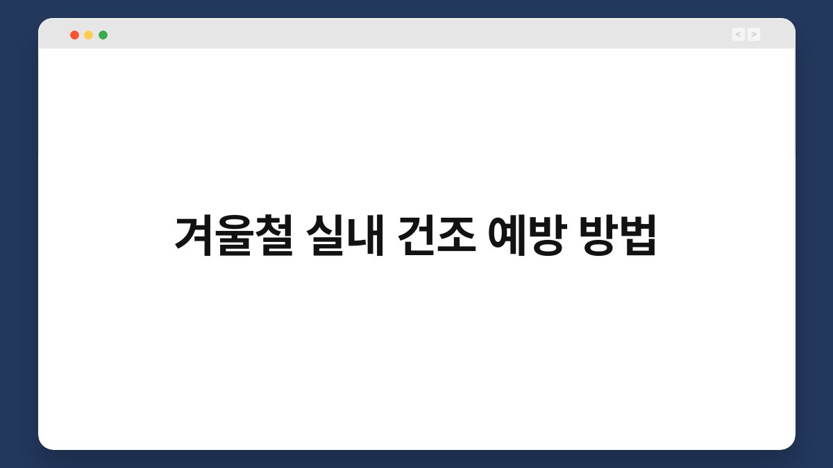겨울철, 실내 공기가 건조해지는 문제로 많은 분들이 고생하고 계시죠? 특히 난방을 틀면 더욱 심해지는 이 현상은 피부와 호흡기 건강에 좋지 않은 영향을 미칠 수 있습니다. 하지만 걱정하지 마세요. 간단한 방법으로 겨울철 실내 건조를 예방할 수 있습니다. 이 글에서는 효과적인 예방 방법과 실천 팁을 소개해 드릴게요. 함께 알아보면서 건강한 겨울을 만들어 보아요!