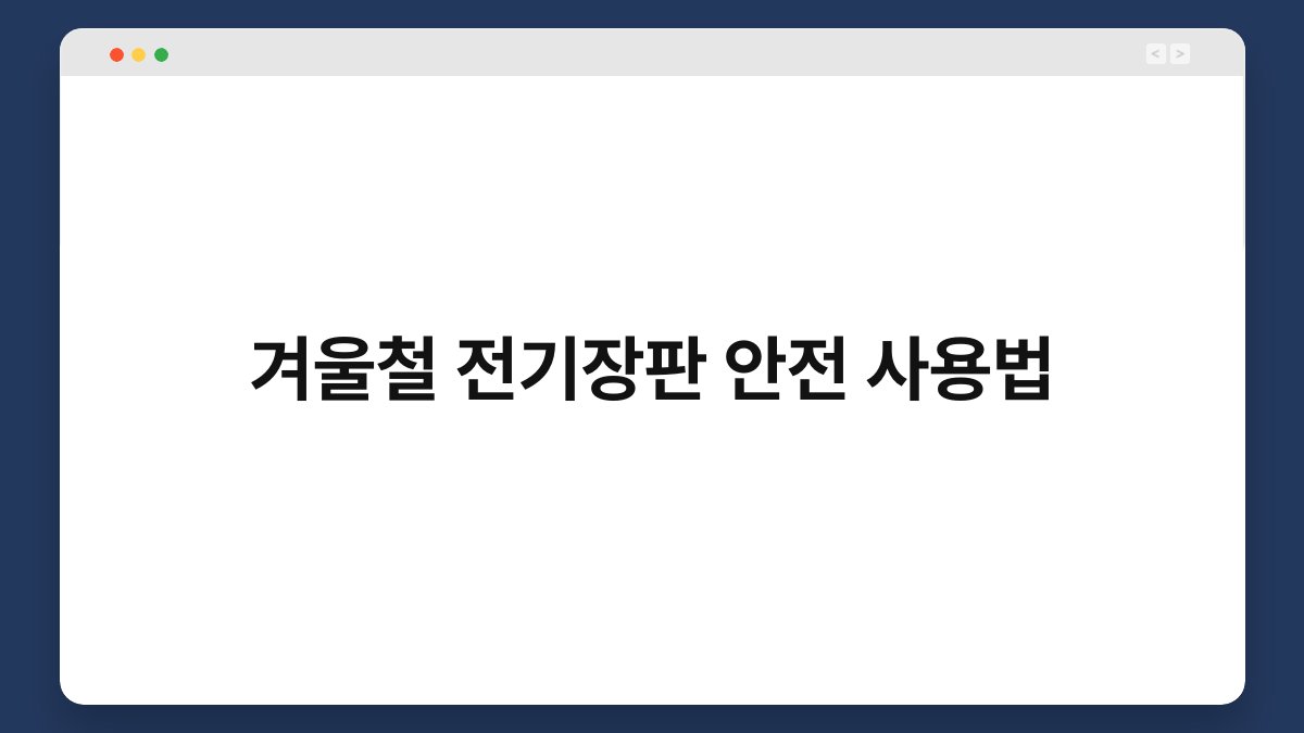 겨울철, 따뜻한 전기장판은 많은 분들에게 필수 아이템이죠. 하지만 안전하게 사용하지 않으면 큰 사고로 이어질 수 있습니다. 오늘은 겨울철 전기장판 안전 사용법에 대해 알아보겠습니다. 전기장판을 안전하게 사용하여 따뜻한 겨울을 보내는 방법을 함께 살펴보아요. 여러분의 소중한 안전을 위해 꼭 필요한 정보들입니다.