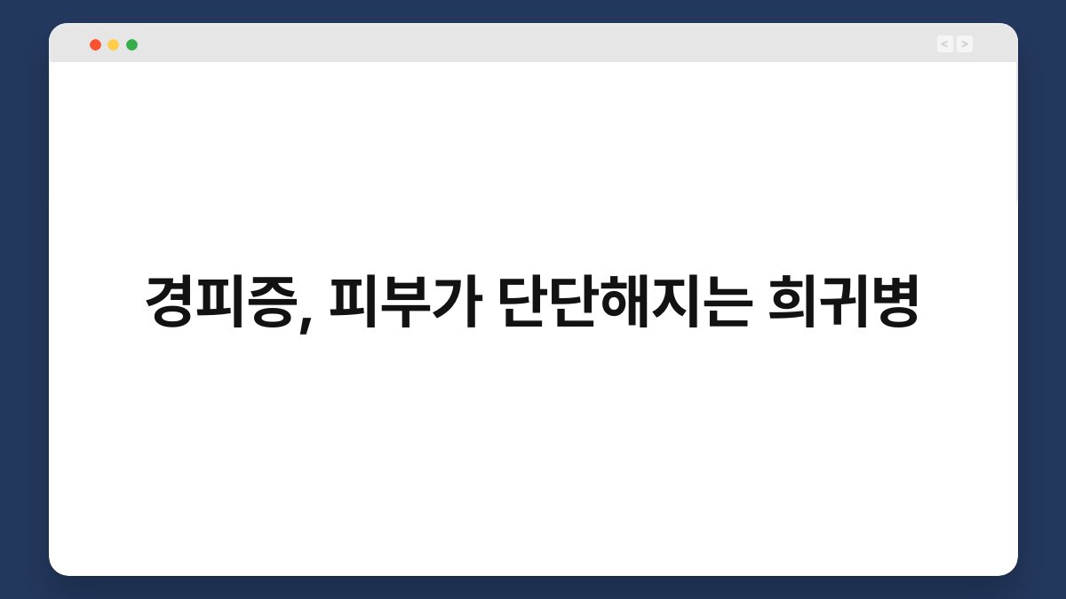 피부가 단단해지는 경피증, 들어보셨나요? 이 희귀병은 많은 사람들에게 생소할 수 있지만, 그로 인해 겪는 고통은 결코 가벼운 것이 아닙니다. 경피증은 피부와 내부 장기가 경화되면서 다양한 증상을 유발하는 질환입니다. 이 글에서는 경피증의 원인, 증상, 치료법, 그리고 관리 방법에 대해 자세히 알아보겠습니다. 경피증에 대한 이해가 깊어지면, 이 질환에 대한 공감과 대처 방법이 한층 더 넓어질 것입니다.
