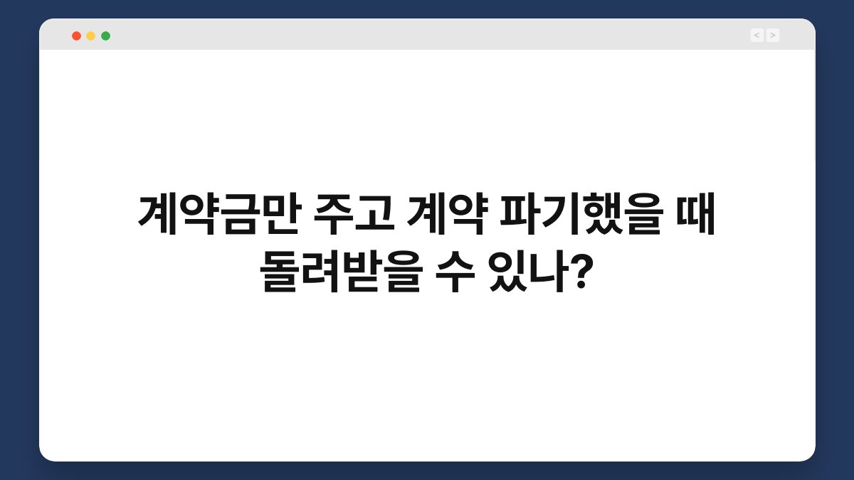 계약을 체결할 때, 계약금이란 중요한 역할을 하죠. 하지만 계약을 파기하게 되면 계약금은 어떻게 될까요? 계약금을 주고 계약을 파기했을 때 돌려받을 수 있는지에 대한 궁금증이 생길 수 있습니다. 이 글에서는 계약금과 계약 파기에 대한 법적 원칙을 살펴보고, 여러분이 알아야 할 정보를 제공하겠습니다. 끝까지 읽어보시면, 여러분의 고민이 해결될 수 있을 거예요.