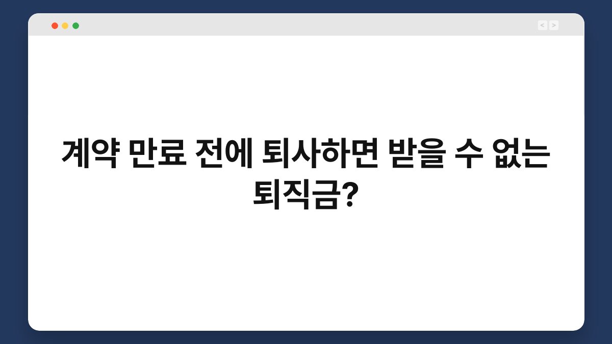 퇴직금은 근로기준법에 의해 규정되어 있으며, 일반적으로 1년 이상 근무한 경우 지급됩니다. 하지만 계약 만료 전에 퇴사할 경우, 퇴직금이 지급되지 않을 수 있는 상황이 발생할 수 있습니다. 이러한 점을 미리 알고 있어야 합니다.