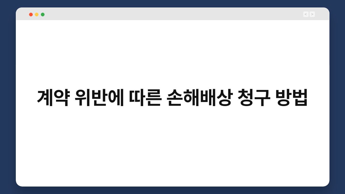 계약이란 두 사람 이상의 약속을 문서화한 것이죠. 하지만 때때로 약속이 지켜지지 않아 계약 위반이 발생하기도 합니다. 이런 상황에서 손해를 보게 되면, 손해배상을 청구할 필요가 생깁니다. 이번 글에서는 계약 위반에 따른 손해배상 청구 방법을 알아보겠습니다. 이 글을 통해 여러분이 계약 위반 시 어떻게 대처해야 하는지, 그리고 어떤 절차를 따라야 하는지에 대한 유용한 정보를 제공할게요.