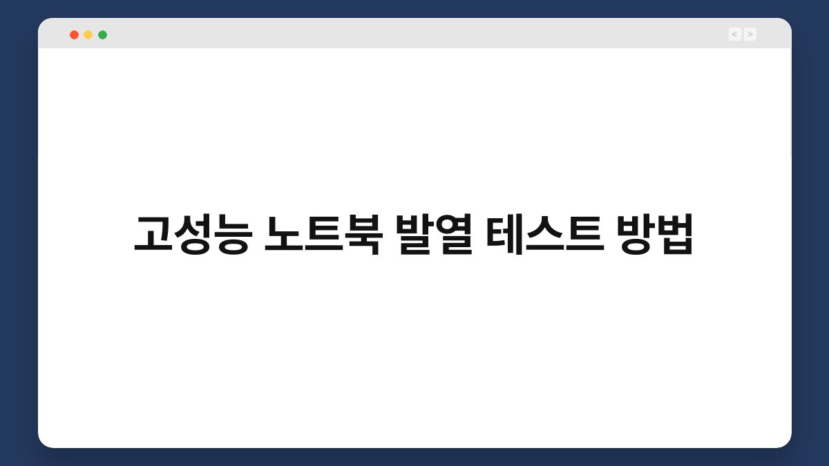 고성능 노트북은 강력한 프로세서와 그래픽 카드로 구동되기 때문에 발열이 발생하는 것은 자연스러운 현상입니다. 하지만 과도한 발열은 성능 저하를 초래할 수 있습니다. 이럴 때 발열 테스트를 통해 문제를 조기에 발견하는 것이 중요합니다.