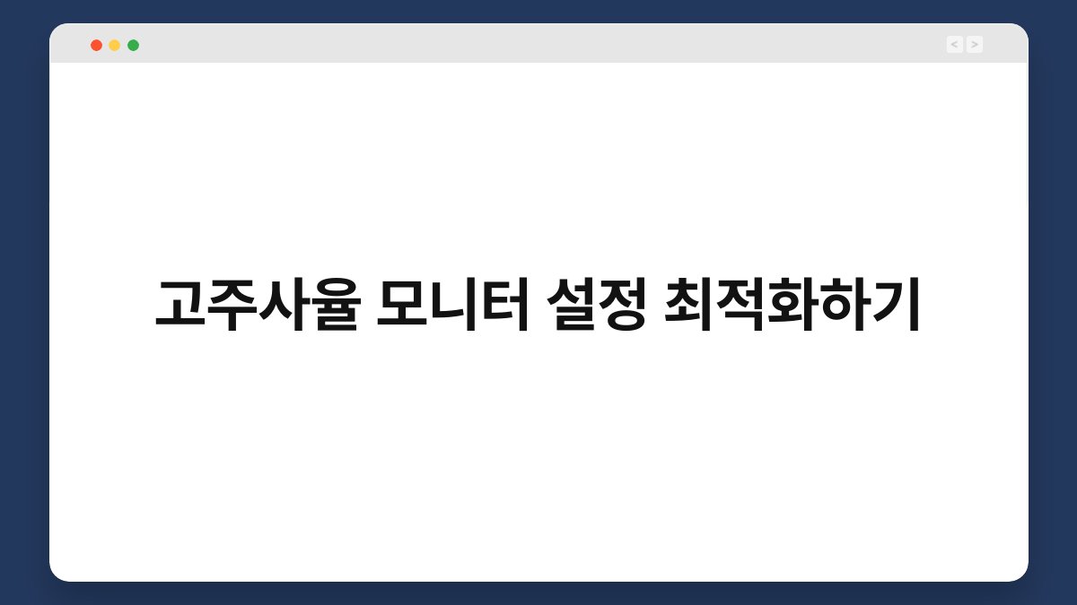 고주사율 모니터는 게이머와 콘텐츠 제작자들 사이에서 필수 아이템으로 자리 잡았습니다. 하지만 많은 분들이 이 모니터의 설정을 최적화하지 못해 그 진가를 발휘하지 못하고 있습니다. 이 글에서는 고주사율 모니터의 설정을 최적화하는 방법을 소개하며, 여러분이 더욱 매끄럽고 생생한 화면을 경험할 수 있도록 도와드리겠습니다. 설정을 통해 게임의 몰입감과 작업의 효율성을 높이는 방법을 알아보세요. 자, 그럼 시작해볼까요?