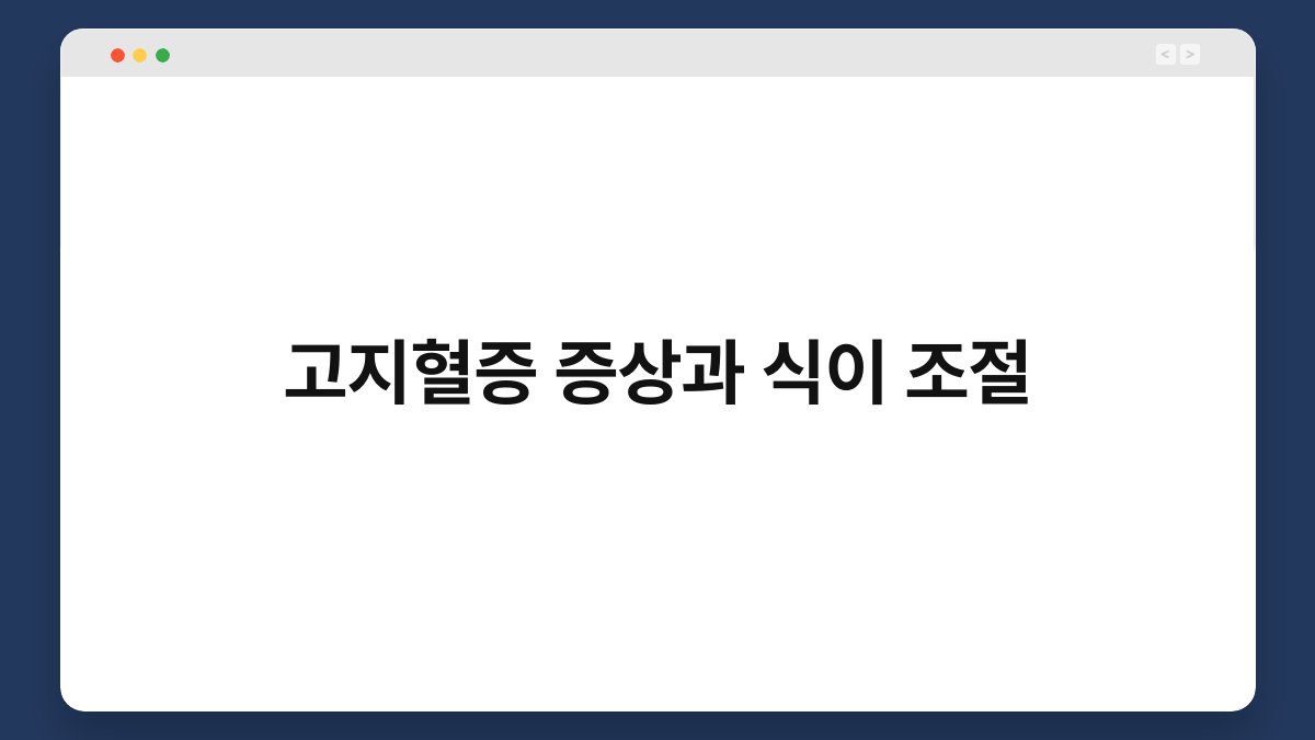 고지혈증, 많은 분들이 들어보셨죠? 하지만 그 증상이나 관리 방법에 대해 잘 모르시는 경우가 많습니다. 고지혈증은 혈액 속에 지방 성분이 과다하게 쌓이는 상태로, 방치할 경우 심혈관 질환으로 이어질 수 있습니다. 그렇다면 고지혈증의 증상은 무엇인지, 그리고 어떻게 식이 조절을 통해 관리할 수 있을까요? 이 글에서는 고지혈증에 대한 이해를 돕고, 식이 조절의 중요성을 살펴보겠습니다.