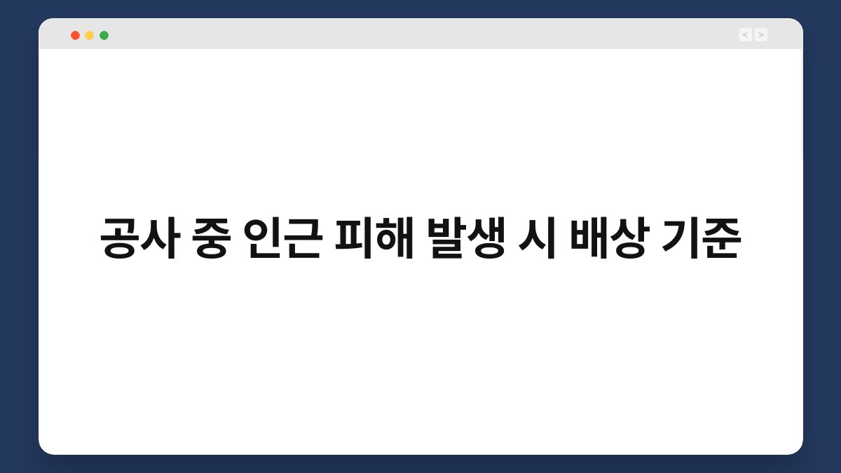 공사 중 인근 피해가 발생하면 어떻게 될까요? 많은 분들이 이 문제에 대해 궁금해하실 겁니다. 공사로 인해 발생하는 피해는 예상치 못한 상황이 많고, 그에 따른 배상 기준도 복잡할 수 있습니다. 이 글에서는 공사 중 인근 피해 발생 시 배상 기준을 명확히 정리해 드리겠습니다. 함께 알아보면서 불안감을 덜어보세요.