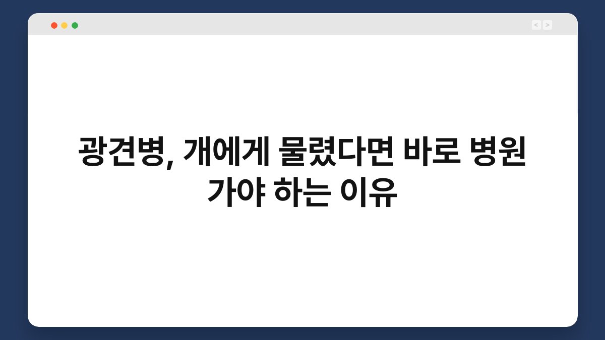 개에게 물린 경험, 누구나 한 번쯤은 겪어보았을 법한 일입니다. 하지만 그 뒤에는 생각보다 심각한 상황이 숨어 있을 수 있습니다. 특히 광견병은 치명적인 질병으로, 개에게 물렸다면 즉시 병원에 가야 하는 이유가 됩니다. 이 글에서는 광견병의 위험성과 개에게 물린 후 어떻게 대처해야 하는지에 대해 알아보겠습니다. 끝까지 읽으시면, 소중한 정보를 얻으실 수 있을 거예요.