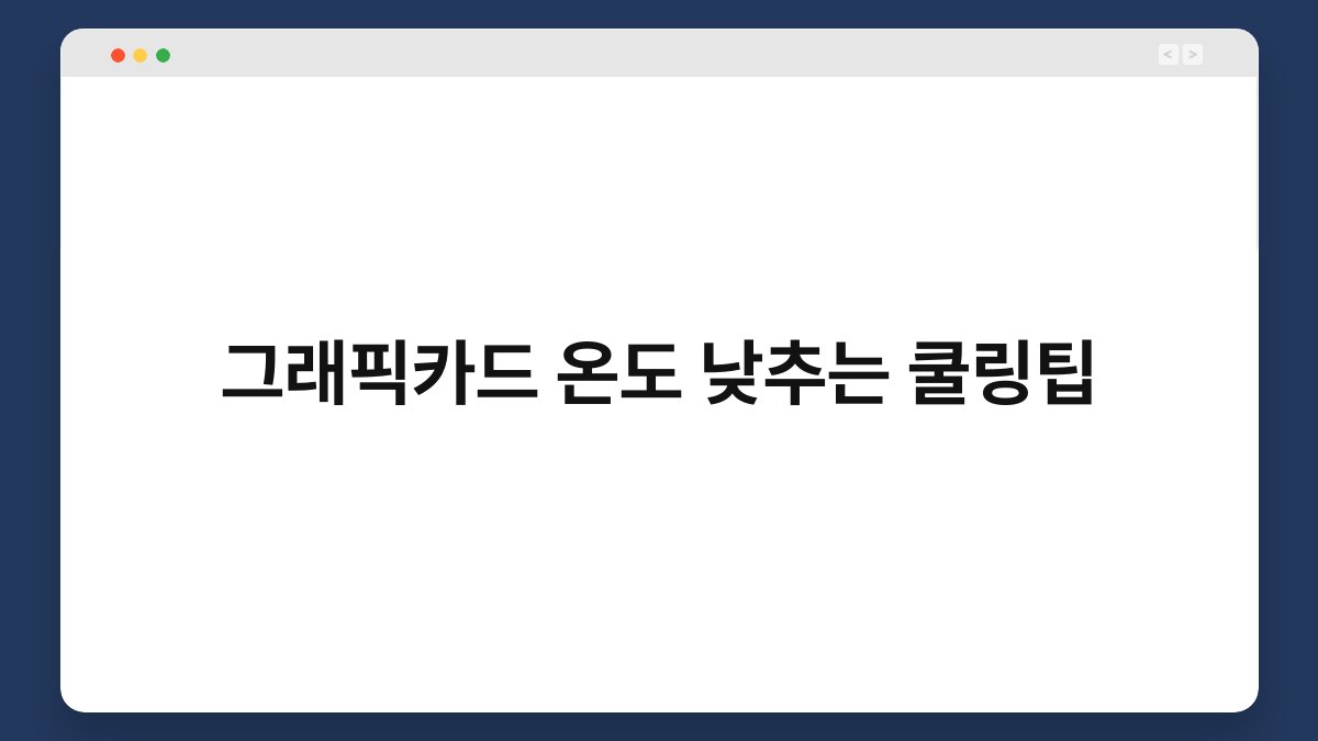 컴퓨터를 사용할 때 그래픽카드의 온도가 올라가는 건 자연스러운 현상입니다. 하지만 과도한 온도는 성능 저하와 수명 단축을 초래할 수 있죠. 그래서 오늘은 그래픽카드 온도를 낮추는 쿨링 팁을 소개하려고 합니다. 이 팁들을 통해 여러분의 소중한 그래픽카드를 더 오랫동안 안전하게 사용할 수 있습니다. 함께 알아보도록 해요!