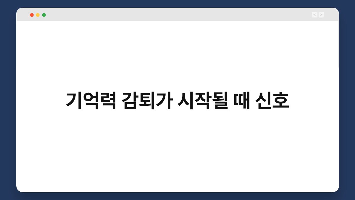 기억력이 예전 같지 않다고 느끼신 적 있으신가요? 일상 속에서 잊어버리는 일이 잦아지면 불안감이 커질 수 있습니다. 기억력 감퇴가 시작될 때 신호는 여러 가지가 있으며, 이를 조기에 인식하는 것이 중요합니다. 오늘은 기억력 감퇴의 신호를 살펴보고, 이를 통해 더 나은 일상으로 나아가는 방법을 제안해 드리겠습니다. 여러분의 소중한 기억을 지키는 데 도움이 될 수 있는 정보들을 함께 알아보시죠.