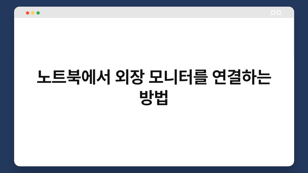 노트북의 작은 화면으로 작업할 때 불편함을 느끼신 적이 있나요? 많은 사람들이 더 넓은 화면에서 작업의 효율성을 높이고 싶어 하죠. 외장 모니터를 연결하면 더 많은 정보를 한눈에 볼 수 있어 생산성이 향상됩니다. 이 글에서는 노트북에서 외장 모니터를 연결하는 방법과 유용한 팁들을 소개해 드릴게요. 끝까지 읽으시면 간단한 방법으로 작업 환경을 개선할 수 있습니다.