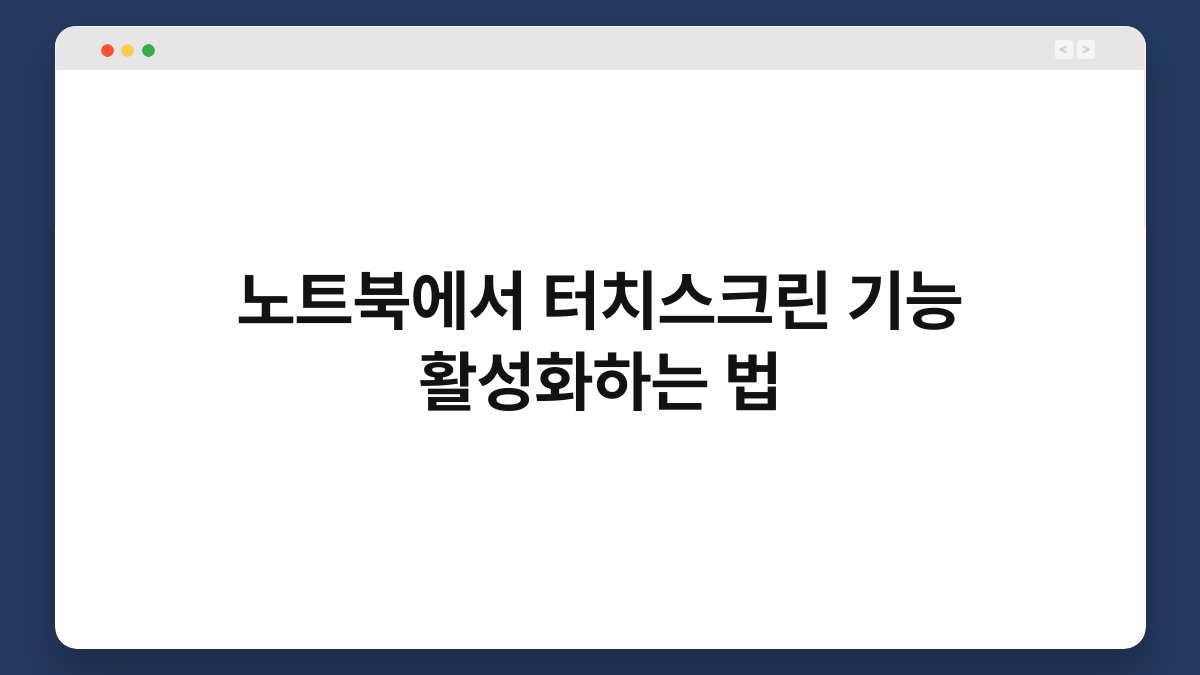 이제 여러분의 노트북에서 터치스크린 기능을 활성화하여 더욱 편리하게 활용해보세요. 작은 변화가 큰 차이를 만들어낼 수 있습니다. 지금이라도 하나씩 바꿔보는 건 어떨까요?