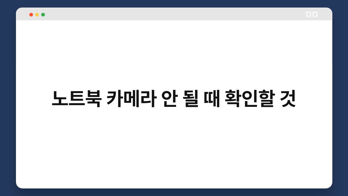 노트북 카메라가 작동하지 않을 때, 정말 당황스럽죠? 회의나 온라인 수업 중에 카메라가 안 된다면 큰일입니다. 이 글에서는 노트북 카메라가 안 될 때 확인해야 할 여러 가지 사항을 안내해 드릴게요. 문제를 해결하기 위한 실질적인 팁과 함께, 원인을 파악하는 데 도움이 되는 정보를 제공하겠습니다. 여러분의 소중한 시간을 절약할 수 있는 방법을 알아보세요.