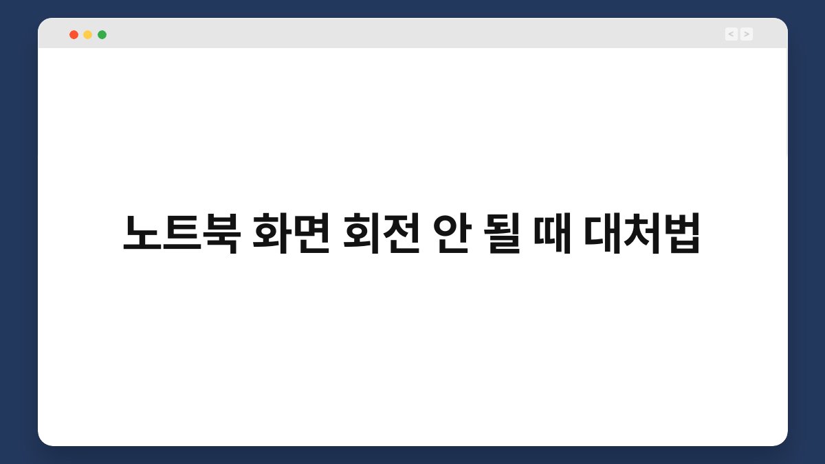 노트북 사용 중에 화면 회전 기능이 작동하지 않아 불편함을 느낀 적이 있으신가요? 대부분의 사용자들이 한 번쯤 겪는 문제인데요, 이럴 때 어떻게 대처해야 할지 막막할 수 있습니다. 화면 회전이 안 될 때의 원인과 해결 방법을 알아보면, 문제를 쉽게 해결할 수 있습니다. 이번 글에서는 노트북 화면 회전 안 될 때 대처법을 자세히 살펴보겠습니다. 마지막까지 함께 해주세요!