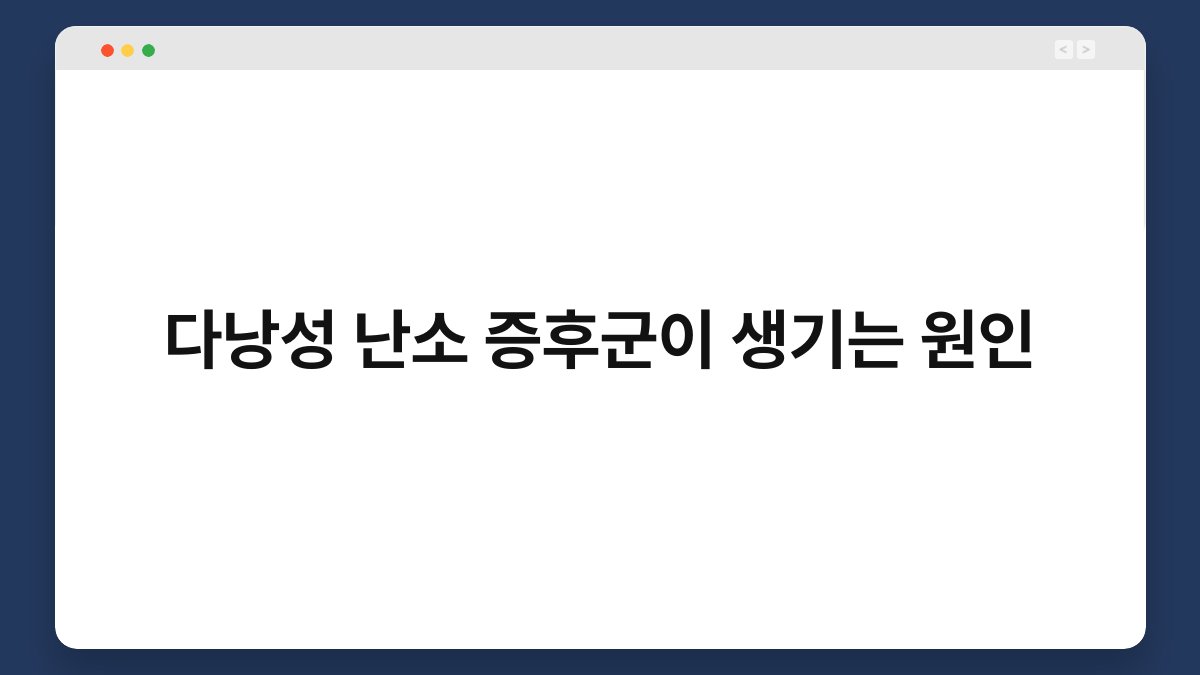 다낭성 난소 증후군(PCOS), 많은 여성들이 경험하는 문제지만 그 원인은 여전히 많은 이들에게 미지의 영역으로 남아 있습니다. 이 증후군은 생리 불순, 체중 증가, 여드름 등 다양한 증상을 동반합니다. 그렇다면 다낭성 난소 증후군이 생기는 원인은 무엇일까요? 이 글에서는 그 원인과 관련된 다양한 요소를 살펴보며, 이해를 돕고자 합니다. 궁금하시죠? 함께 알아봅시다.