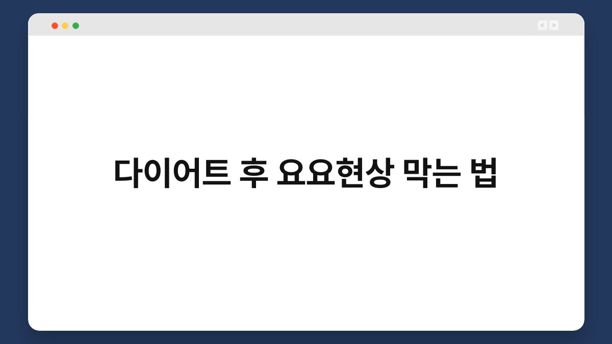 다이어트를 성공적으로 마친 후, 요요현상 때문에 고민하는 분들이 많습니다. 목표 체중에 도달했지만, 다시 예전의 체중으로 돌아가는 경험은 정말 속상하죠. 하지만 걱정하지 마세요! 요요현상을 막는 방법은 여러 가지가 있습니다. 이 글에서는 다이어트 후 요요현상을 예방하는 효과적인 전략들을 소개해 드리겠습니다. 끝까지 읽어보시면, 건강한 몸매를 유지하는 데 큰 도움이 될 거예요.