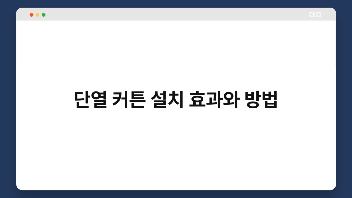 집에서 느끼는 온도, 불편함을 해결하고 싶지 않으신가요? 단열 커튼은 에너지 효율성을 높이고, 실내 온도를 조절하는 데 큰 도움을 줍니다. 이 글에서는 단열 커튼의 설치 효과와 방법에 대해 알아보겠습니다. 집안의 온도를 쾌적하게 유지하고, 에너지 비용을 절감할 수 있는 방법을 함께 살펴보아요. 마지막까지 함께 해주세요!