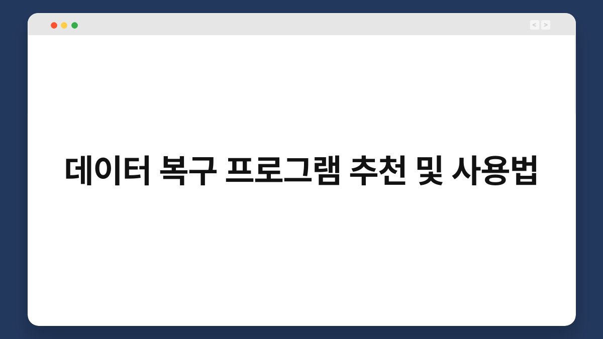 데이터를 잃어버리는 경험, 누구나 한 번쯤은 겪어보셨을 겁니다. 소중한 파일이나 사진이 갑자기 사라지면 정말 속상하죠. 하지만 걱정하지 마세요. 데이터 복구 프로그램을 활용하면 잃어버린 파일을 되찾을 수 있습니다. 이 글에서는 효과적인 데이터 복구 프로그램 추천과 사용법을 안내해 드릴게요. 끝까지 읽으시면 데이터 복구의 비밀을 알게 될 것입니다.