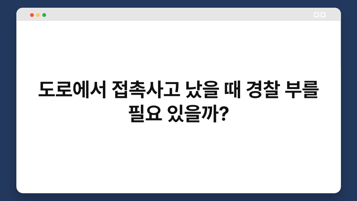 도로에서 접촉사고가 발생했을 때, 많은 분들이 경찰을 부를지 고민하게 됩니다. 사고의 경중에 따라 다르지만, 경찰 호출 여부는 중요한 결정입니다. 이 글에서는 접촉사고 시 경찰을 부르는 것이 왜 필요한지, 그리고 어떤 상황에서 꼭 부르는 것이 좋은지를 살펴보겠습니다. 이 정보를 통해 여러분의 판단에 도움이 되길 바랍니다.
