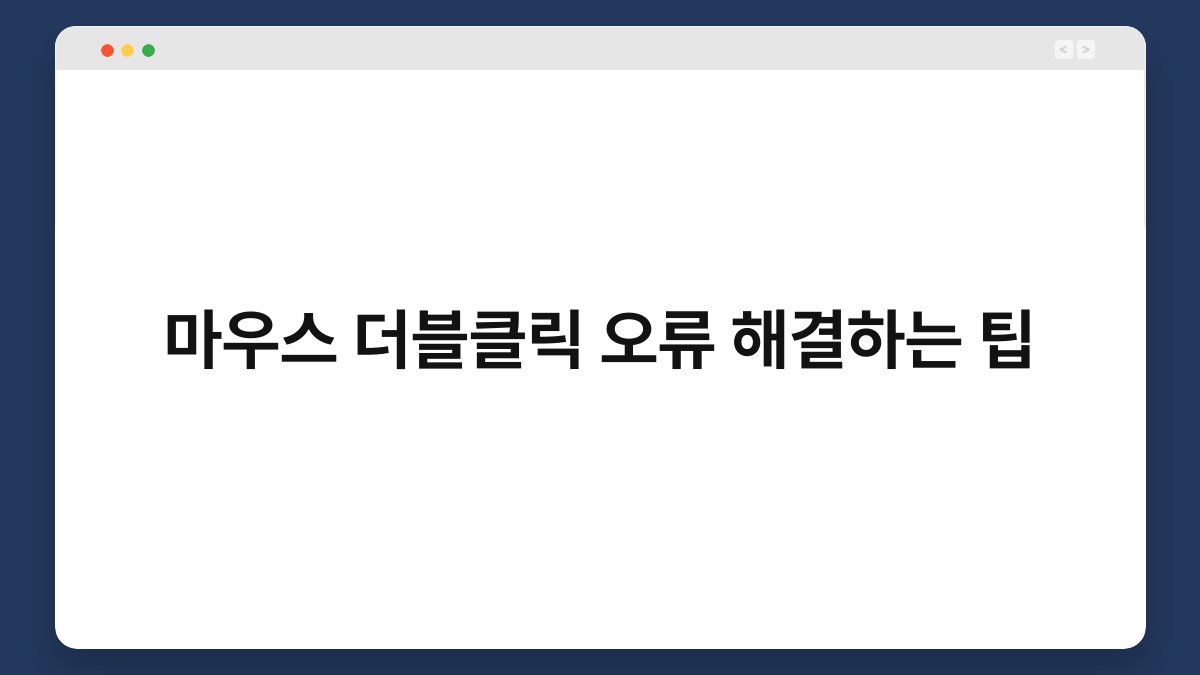 마우스를 사용할 때 더블클릭이 제대로 되지 않아 불편함을 느끼신 적 있으신가요? 이 문제는 많은 사용자들이 겪는 흔한 오류로, 작업의 효율성을 저하시킬 수 있습니다. 하지만 걱정하지 마세요! 마우스 더블클릭 오류를 해결하는 팁을 통해 이 문제를 간단하게 해결할 수 있습니다. 이 글에서는 더블클릭 오류의 원인과 해결 방법을 소개할 예정입니다. 끝까지 읽어보시면, 다시 원활하게 마우스를 사용할 수 있는 방법을 알게 될 것입니다.