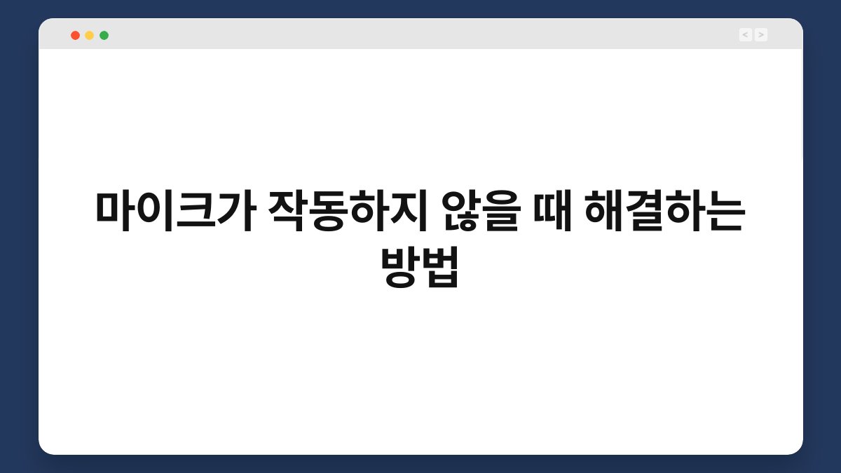 마이크가 작동하지 않을 때, 정말 당황스럽죠? 회의 중이나 방송 중에 갑자기 소리가 나지 않으면 큰일입니다. 이럴 때 어떻게 대처해야 할까요? 이 글에서는 마이크가 작동하지 않을 때 해결하는 방법을 단계별로 안내해 드릴게요. 마이크 문제를 간단히 해결할 수 있는 팁을 통해 다시 원활한 소통을 이어가실 수 있도록 도와드리겠습니다.