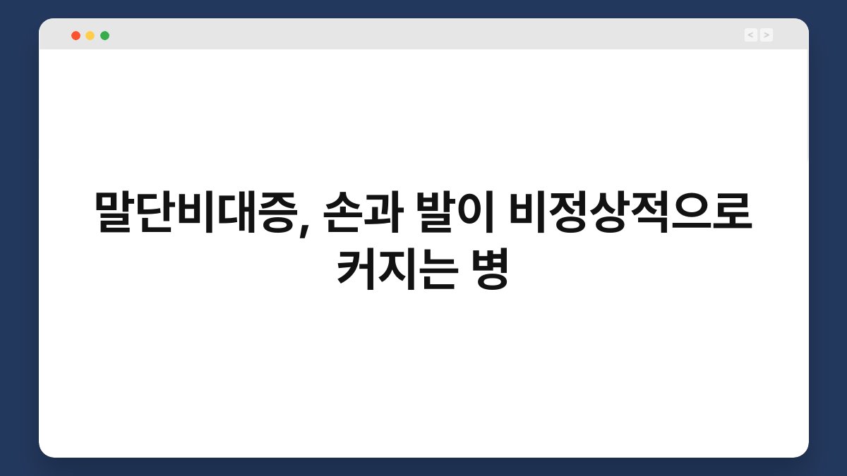 말단비대증은 성장 호르몬이 과다하게 분비되어 손과 발이 비정상적으로 커지는 질환입니다. 이 질환은 일반적으로 성인이 된 후에 발생하며, 성장판이 닫힌 후에도 호르몬의 영향을 받아 신체의 특정 부위가 계속해서 성장하게 됩니다.