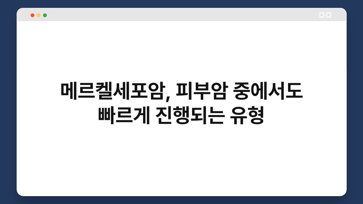 ✅ 메르켈세포암은 드물지만 빠르게 진행되는 피부암입니다.