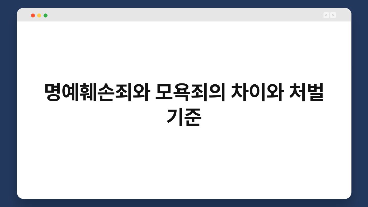 사회에서 소통이 활발해지면서, 명예훼손죄와 모욕죄에 대한 이해가 더욱 중요해졌습니다. 많은 사람들이 이 두 가지 죄를 혼동하지만, 그 차이는 명확합니다. 이 글에서는 명예훼손죄와 모욕죄의 정의, 처벌 기준, 그리고 실생활에서의 적용 사례를 통해 명확한 구분을 제공할 것입니다. 이러한 정보는 법적 문제를 예방하는 데 큰 도움이 될 수 있습니다. 함께 알아보며 궁금증을 해결해 보도록 하겠습니다.