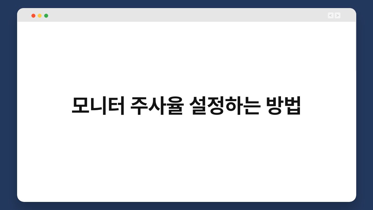 컴퓨터를 사용할 때, 모니터의 주사율은 매우 중요한 요소입니다. 주사율이 높을수록 화면의 부드러움과 반응 속도가 향상되어 게임이나 영화 감상 시 더 좋은 경험을 제공합니다. 하지만 주사율 설정 방법이 복잡하게 느껴질 수 있습니다. 이번 글에서는 모니터 주사율 설정하는 방법을 쉽게 설명해 드릴게요. 이 과정을 통해 여러분의 화면을 최적화해 보세요!