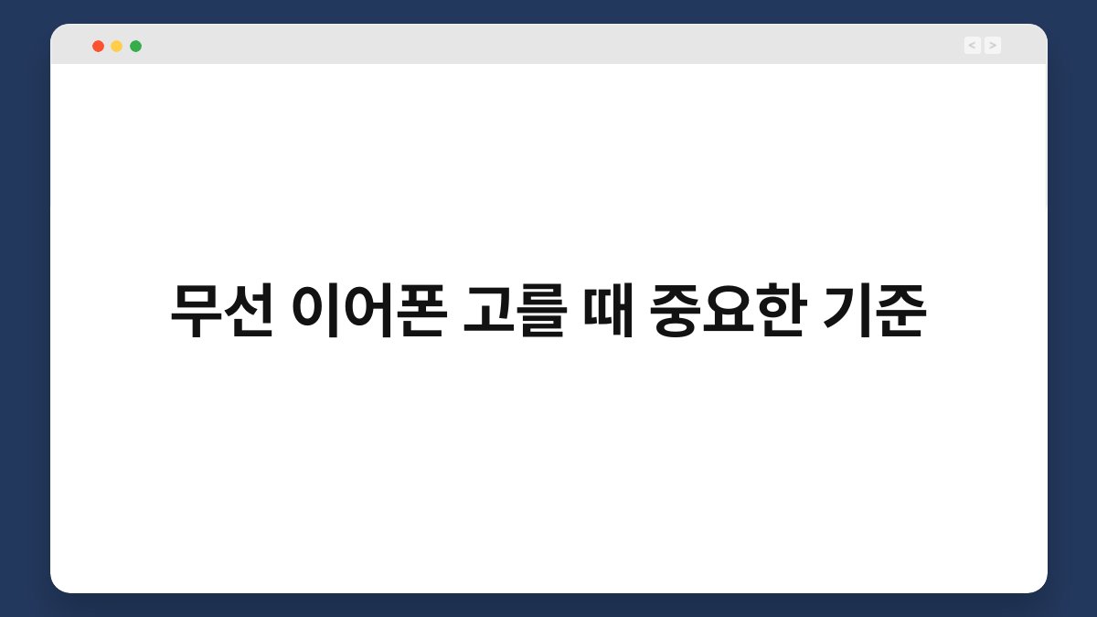 무선 이어폰을 고를 때, 어떤 기준이 가장 중요할까요? 요즘 많은 사람들이 무선 이어폰을 사용하면서 그 선택이 점점 더 중요해지고 있습니다. 다양한 브랜드와 모델이 넘쳐나는 시장에서, 어떤 요소를 고려해야 후회 없는 선택을 할 수 있을까요? 이 글에서는 무선 이어폰을 고를 때 반드시 체크해야 할 기준들을 살펴보겠습니다. 끝까지 읽으시면 여러분의 선택에 도움이 될 유용한 정보가 가득할 것입니다.