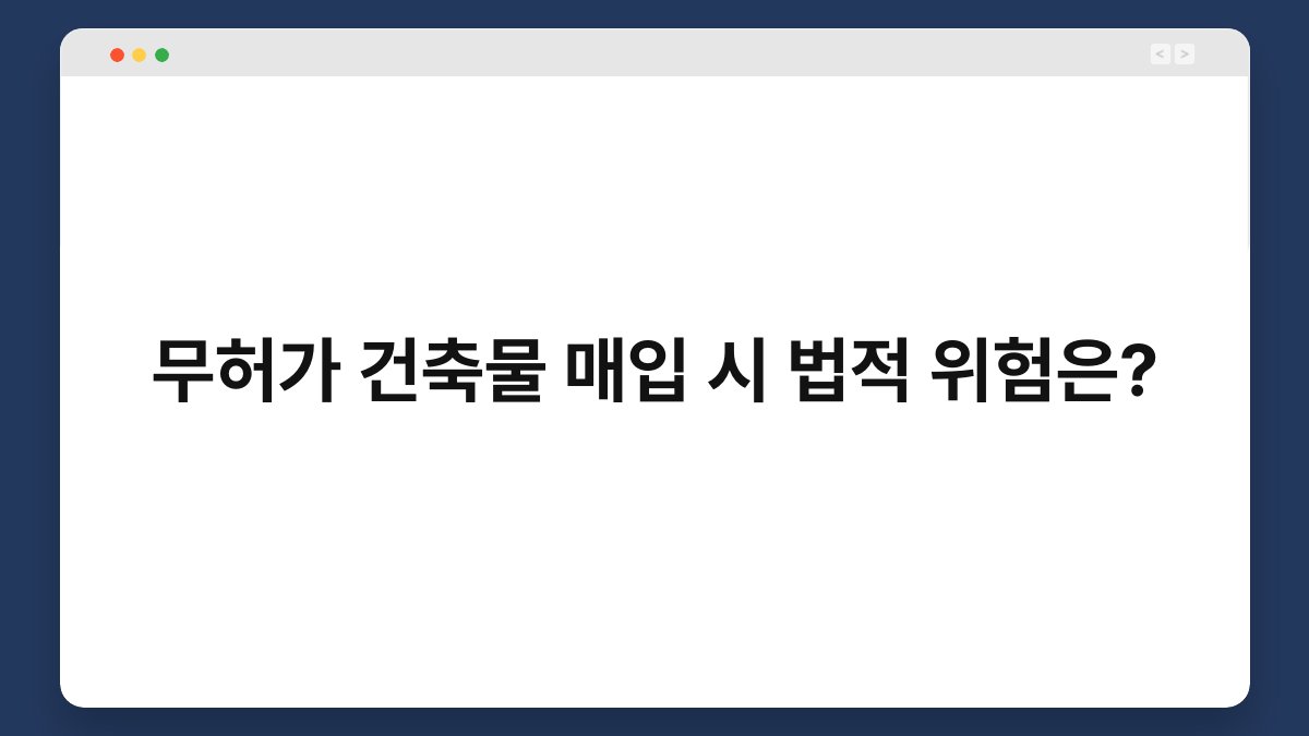 건축물 매입을 고려하고 계신가요? 그런데 그 건축물이 무허가라면 법적 위험이 따를 수 있습니다. 무허가 건축물은 불법적인 요소가 많아 매입 후 예기치 못한 문제에 직면할 수 있거든요. 이 글에서는 무허가 건축물 매입 시 마주할 수 있는 법적 위험과 그에 대한 대처법을 알아보겠습니다. 이 정보를 통해 안전한 투자 결정을 내리시길 바랍니다.