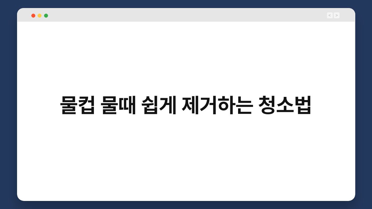 물컵에 생긴 물때, 정말 보기 싫죠? 자주 사용하다 보면 어쩔 수 없이 생기는 물때는 청소하기도 번거롭고, 어떻게 제거해야 할지 고민이 많습니다. 하지만 걱정하지 마세요. 간단한 청소법으로 물컵의 물때를 쉽게 제거할 수 있는 방법이 있습니다. 이 글에서는 물컵 물때를 효과적으로 제거하는 다양한 청소법을 소개하겠습니다. 끝까지 읽어보시면 여러분의 물컵이 다시 깨끗해지는 모습을 확인할 수 있을 거예요.