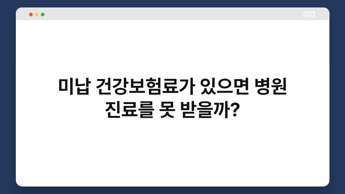 병원에 가고 싶은데 미납 건강보험료가 걱정되신가요? 많은 분들이 이런 고민을 하곤 합니다. 건강보험료가 미납된 경우, 진료를 받을 수 있을지에 대한 궁금증이 커지기 마련입니다. 오늘은 미납 건강보험료와 병원 진료의 관계를 자세히 살펴보겠습니다. 이 글을 통해 여러분의 불안감을 해소하고, 필요한 정보를 제공하겠습니다.