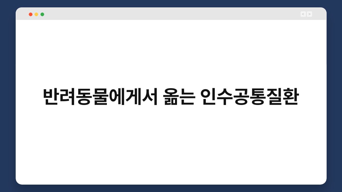 인수공통질환은 사람과 동물 간에 전염되는 질환을 의미합니다. 이는 바이러스, 박테리아, 기생충 등 다양한 원인에 의해 발생할 수 있습니다. 특히, 반려동물과 밀접하게 생활하는 사람들에게는 더욱 주의가 필요합니다. 이러한 질환은 때때로 심각한 건강 문제를 일으킬 수 있어요. 따라서 반려동물의 건강을 챙기는 것이 곧 우리의 건강을 지키는 길입니다.