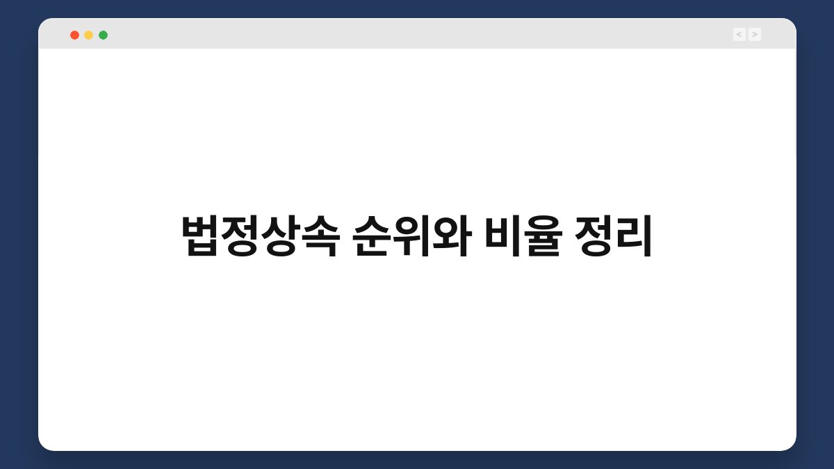 상속, 특히 법정상속에 대해 고민해본 적 있으신가요? 많은 분들이 상속 문제를 복잡하게 느끼지만, 법정상속 순위와 비율을 이해하면 훨씬 수월해집니다. 이 글에서는 법정상속의 기본 개념과 순위, 비율에 대해 자세히 알아보겠습니다. 상속에 대한 이해를 높이고, 나와 내 가족의 권리를 지키는 데 도움이 될 것입니다. 마지막까지 함께해 주세요!