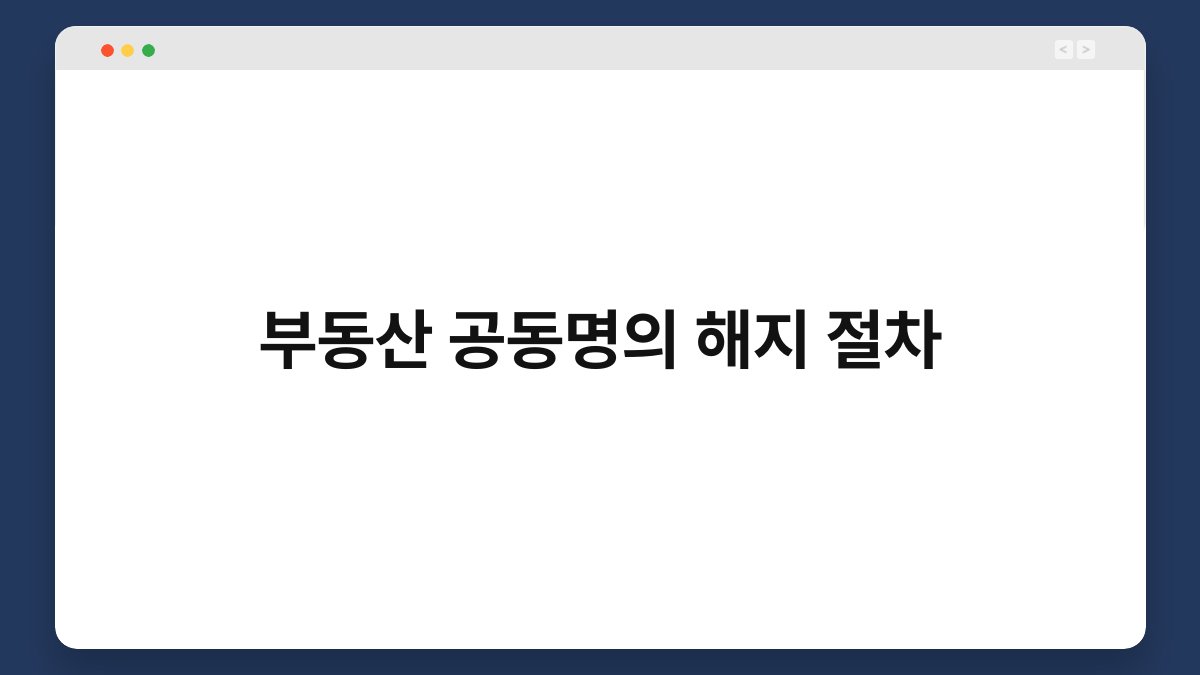 부동산 공동명의 해지 절차는 생각보다 복잡할 수 있습니다. 공동명의로 부동산을 소유하고 있다면, 여러 가지 이유로 해지를 고려할 수 있습니다. 이 글에서는 부동산 공동명의 해지 절차에 대해 자세히 알아보겠습니다. 해지 절차를 이해하면 불필요한 분쟁을 예방하고, 보다 원활하게 진행할 수 있습니다. 지금부터 함께 알아보시죠.