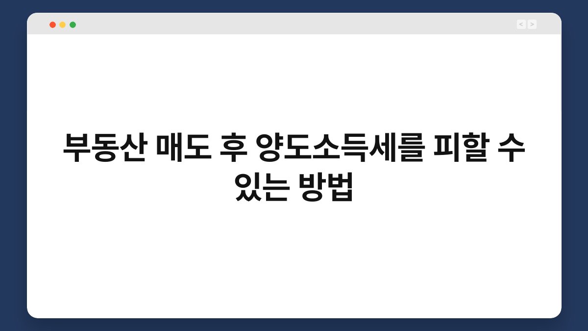 ✅ 부동산 매도 후 양도소득세를 피하는 방법은 여러 가지가 있습니다.