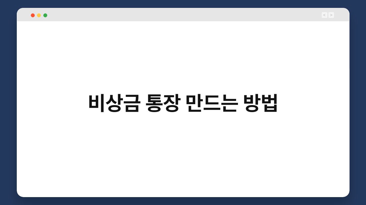 갑자기 예상치 못한 지출이 생기면 당황스러울 수 있습니다. 이런 상황에서 비상금 통장이 큰 도움이 될 수 있죠. 오늘은 비상금 통장을 만드는 방법에 대해 알아보겠습니다. 이 글을 통해 비상금 통장을 어떻게 개설하고 관리할 수 있는지, 그리고 그 필요성에 대해 자세히 설명드릴게요. 끝까지 읽으시면 경제적 안정성을 높이는 데 큰 도움이 될 것입니다.