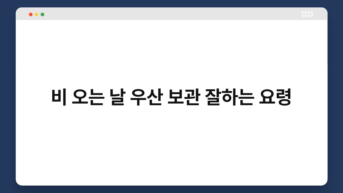 비 오는 날, 우산을 챙기는 것은 필수죠. 하지만 우산을 보관하는 방법에 대해서는 잘 모르시는 분들이 많습니다. 우산이 젖은 채로 보관하면 곰팡이가 생기고, 수명이 단축될 수 있습니다. 이 글에서는 비 오는 날 우산 보관 잘하는 요령을 소개하겠습니다. 이제 우산을 올바르게 관리하여 더 오래 사용할 수 있는 방법을 알아보도록 해요.