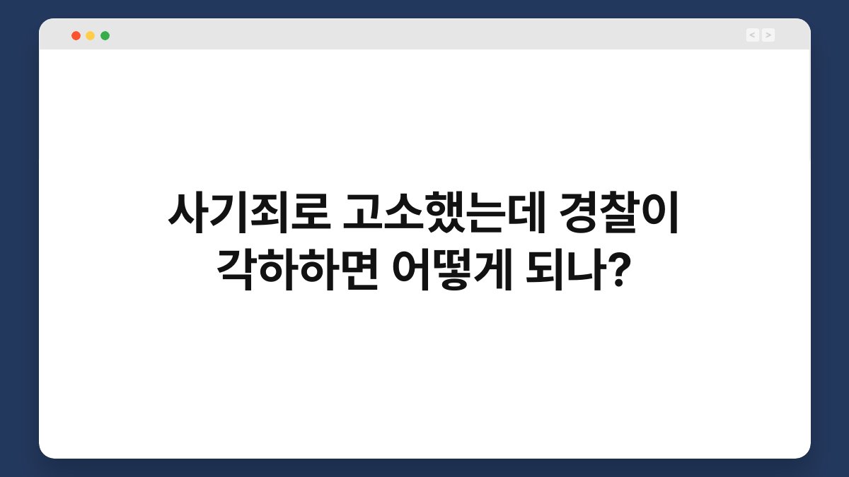 사기죄로 고소를 했는데 경찰이 각하 결정을 내리면 어떻게 될까요? 많은 분들이 이 상황에 대해 궁금해 하실 텐데요. 각하란 법적 절차에서 사건이 진행되지 않도록 결정하는 것을 의미합니다. 즉, 고소가 받아들여지지 않는다는 뜻입니다. 이 글에서는 각하의 의미와 그로 인해 발생할 수 있는 결과들에 대해 자세히 알아보겠습니다. 끝까지 함께해 주세요!