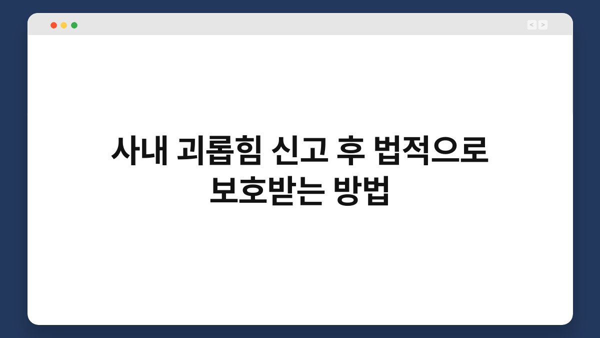 사내 괴롭힘, 누구에게나 일어날 수 있는 불행한 상황입니다. 이러한 경우, 어떻게 법적으로 보호받을 수 있을까요? 이 글에서는 사내 괴롭힘 신고 후 법적 보호 방법에 대해 자세히 알아보겠습니다. 괴롭힘으로부터 안전한 환경을 만들기 위한 정보와 실질적인 조언을 제공하니, 끝까지 읽어보시길 권장합니다.